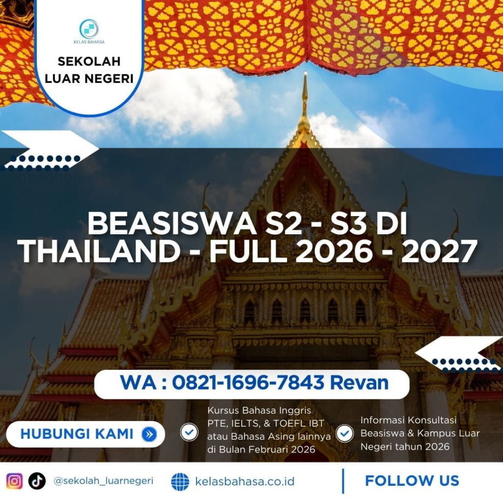 Beasiswa S2 S3 di Thailand full 2026 2027 merupakan peluang besar bagi calon mahasiswa internasional yang ingin melanjutkan studi magister dan doktoral dengan biaya penuh ditanggung, termasuk biaya kuliah, akomodasi, serta biaya hidup selama masa studi.