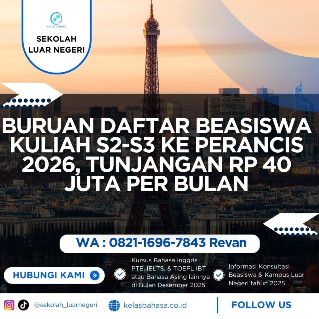 Peluang besar bagi kamu: beasiswa S2 S3 Prancis 2026 kini dibuka — dengan tunjangan hidup hingga Rp 40 juta per bulan, biaya kuliah gratis, dan fasilitas lengkap. Berikut detail persyaratan dan cara mendaftar.