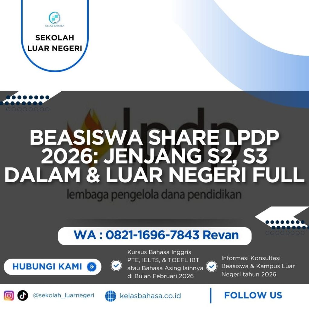 Beasiswa SHARE LPDP 2026 S2 S3 dalam luar negeri menawarkan pembiayaan penuh bagi Warga Negara Indonesia yang ingin menempuh studi magister (S2) maupun doktoral (S3) di universitas terbaik, baik di dalam maupun luar negeri, melalui skema pendanaan penuh yang mencakup biaya pendidikan dan biaya hidup