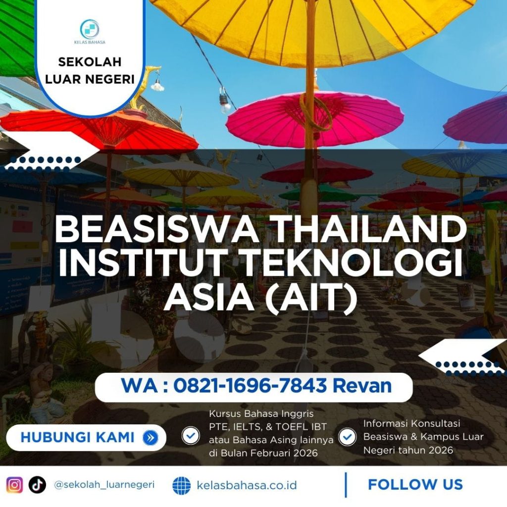 Beasiswa Thailand Asian Institute of Technology AIT membuka peluang bagi mahasiswa internasional yang ingin melanjutkan studi magister (S2) dan doktoral (S3) dengan dukungan beasiswa yang mencakup biaya kuliah, tunjangan hidup, dan fasilitas pendidikan lainnya di Thailand melalui program AIT Scholarships.