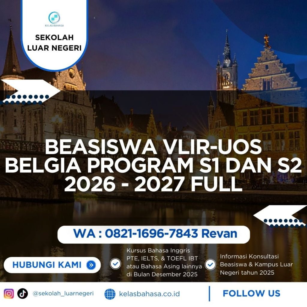 Beasiswa VLIR-UOS Belgia Program S1 S2 2026-2027 adalah kesempatan fully funded belajar di universitas-universitas di Flanders, Belgia bagi mahasiswa dari negara berkembang termasuk Indonesia, yang mencakup biaya kuliah, biaya hidup, asuransi, dan perjalanan selama masa studi.