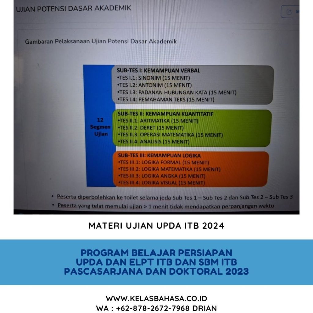 Pendaftaran untuk Kursus UPDA & ELPT ITB 2026 kini tersedia. Selain itu, program ini dirancang secara khusus untuk membantu Anda memahami materi, menguasai strategi, serta menghadapi latihan soal yang relevan dengan ujian. Dengan demikian, peluang Anda untuk mendapatkan skor tinggi semakin terbuka.