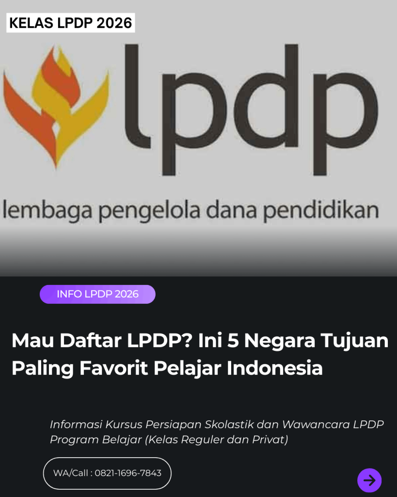 baca juga : Kursus Wawancara Substansi LPDP 2026 – Simulasi Panelis & Strategi Lolos