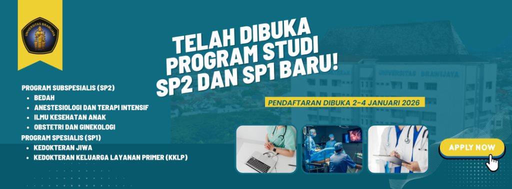 Pendaftaran pendaftaran PPDS SP-1 dan SP-2 Universitas Brawijaya 2026 resmi dibuka secara online sampai 4 Januari 2026 untuk calon peserta Program Pendidikan Dokter Spesialis. Calon pendaftar harus login melalui portal Admisi UB, melengkapi dokumen, serta mengikuti mekanisme seleksi administrasi dan ujian sesuai ketentuan panitia