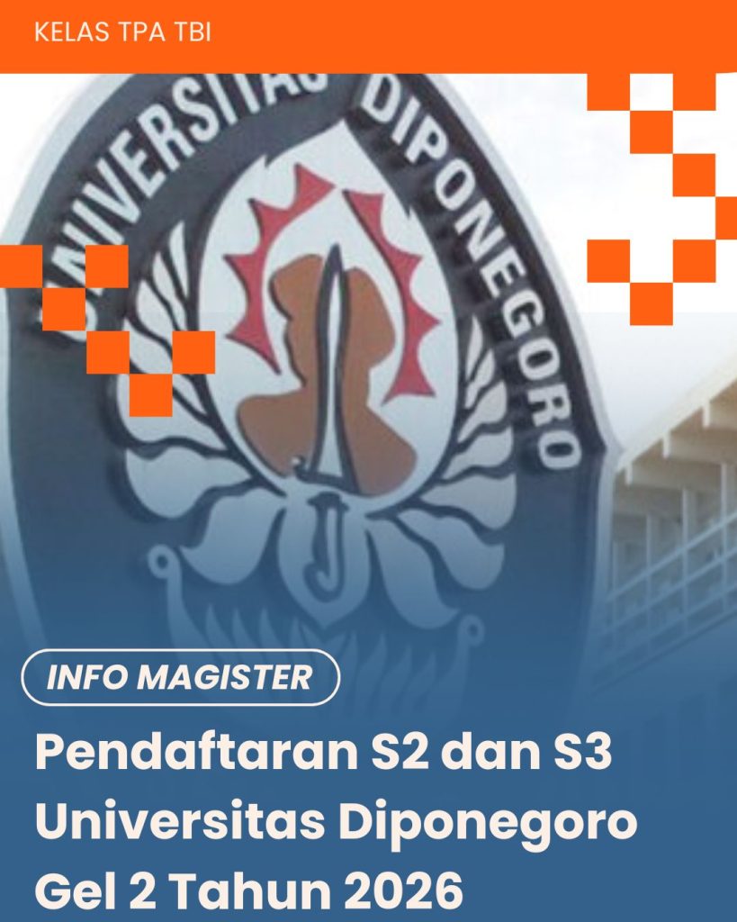 Pendaftaran S2 dan S3 Universitas Diponegoro Gelombang 2 2026 merupakan salah satu jalur penerimaan mahasiswa baru program pascasarjana di Universitas Diponegoro. Melalui seleksi ini, calon mahasiswa dapat mendaftar ke berbagai program Magister dan Doktor yang tersedia di Undip. Oleh karena itu, penting bagi calon peserta untuk mengetahui jadwal pendaftaran, syarat administrasi, serta tahapan seleksi pendaftaran S2 dan S3 Universitas Diponegoro sebelum mengikuti proses seleksi.