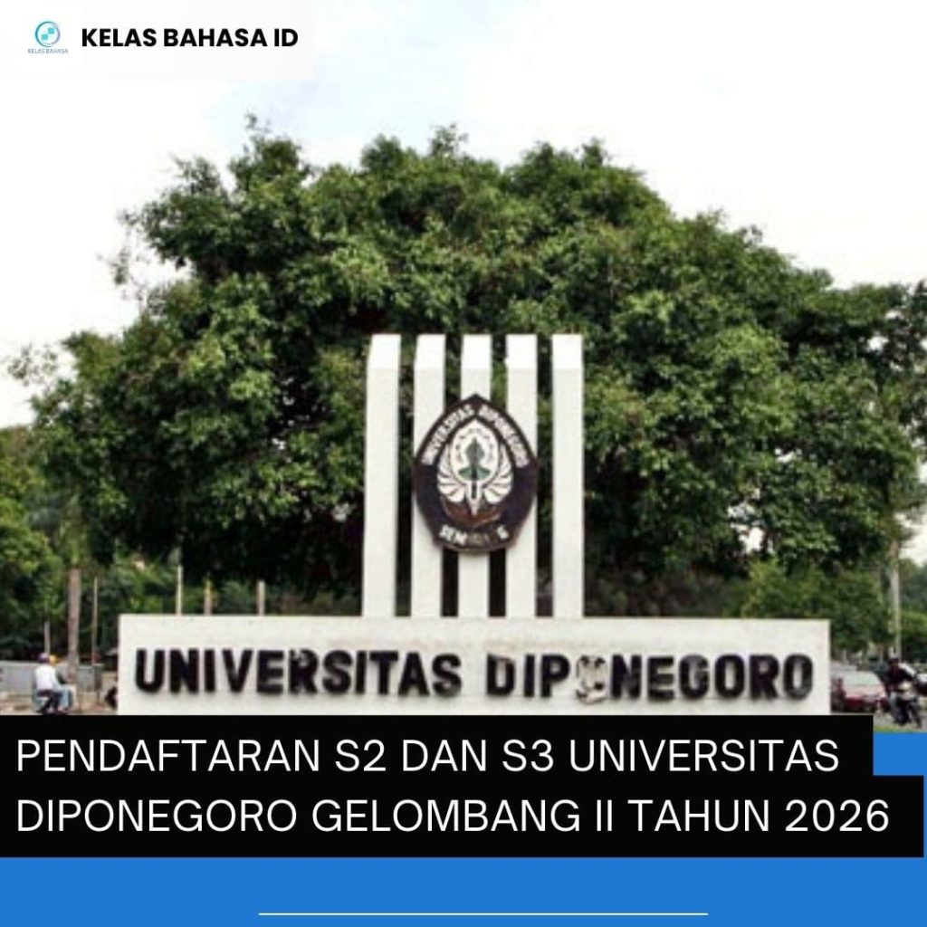 Pendaftaran S2 & S3 UNDIP 2026 (gelombang II) sudah dibuka — Kelas Bahasa siap mendampingi kamu dengan persiapan lengkap untuk pendaftaran pascasarjana.