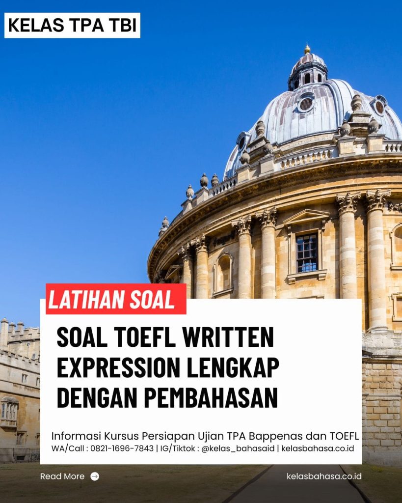 10 Contoh Soal TOEFL Written Expression + Pembahasan
