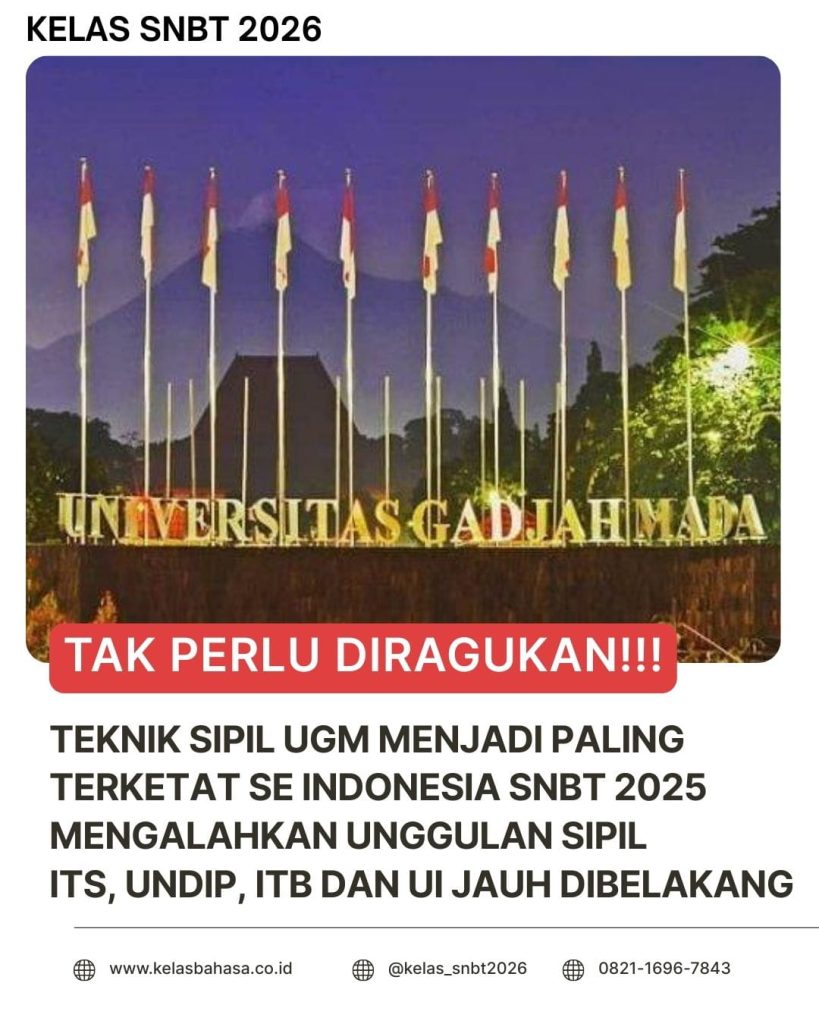 Selain itu, artikel ini juga membahas strategi lolos SNBT Teknik Sipil, peluang melalui jalur Mandiri, serta kesempatan masuk melalui International Undergraduate Program (IUP).
